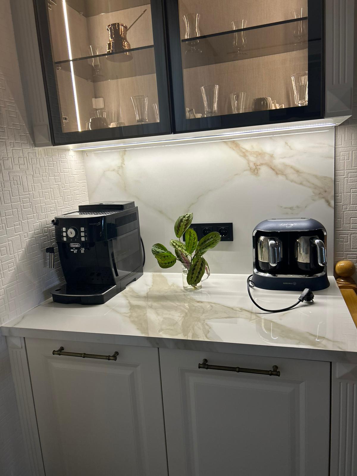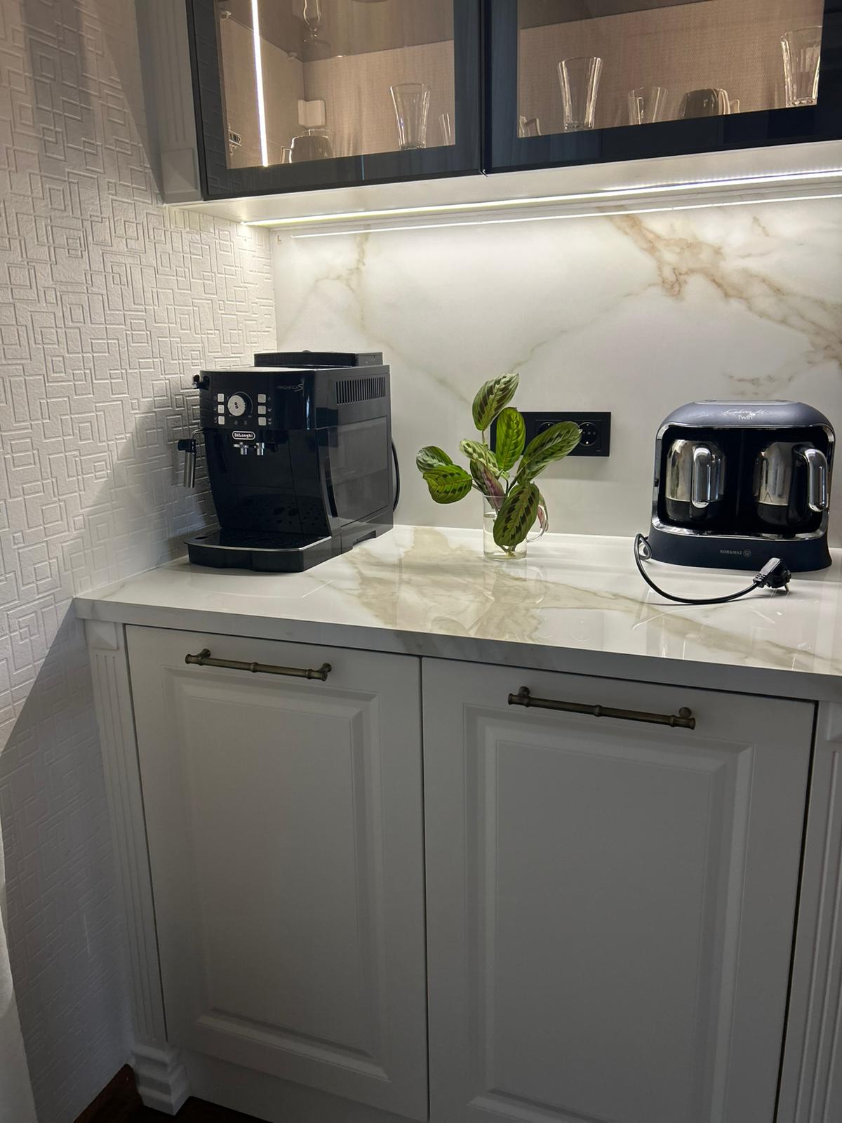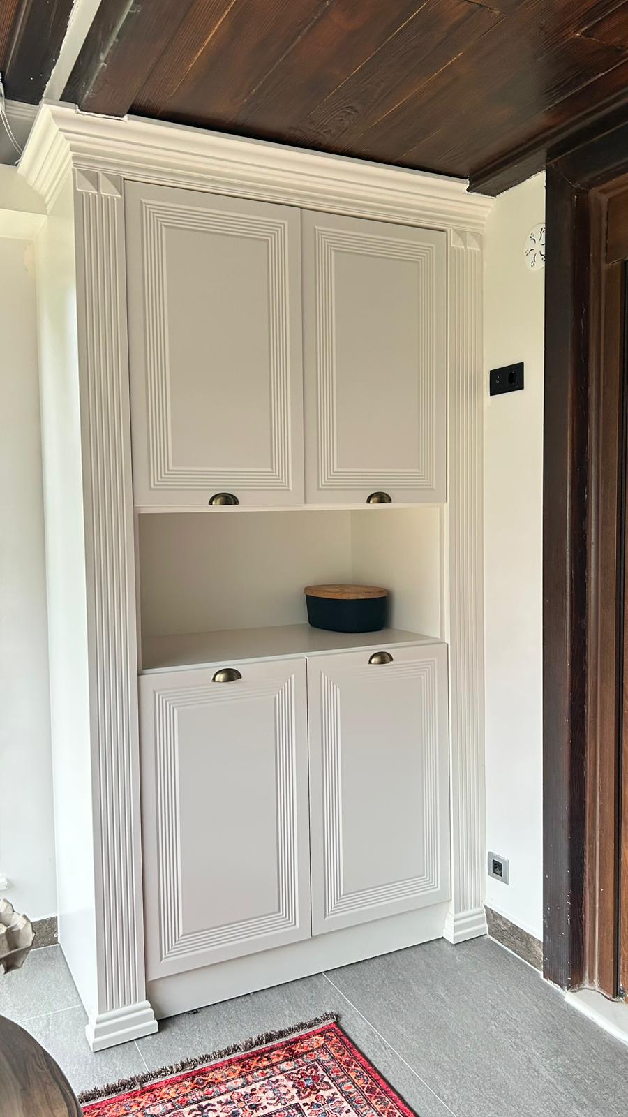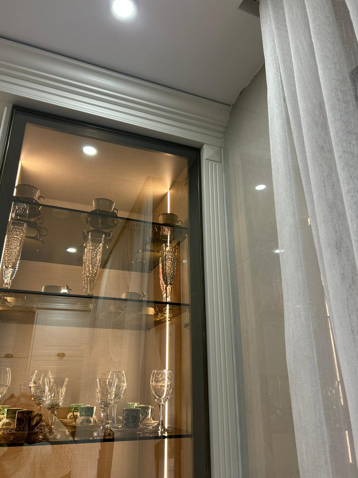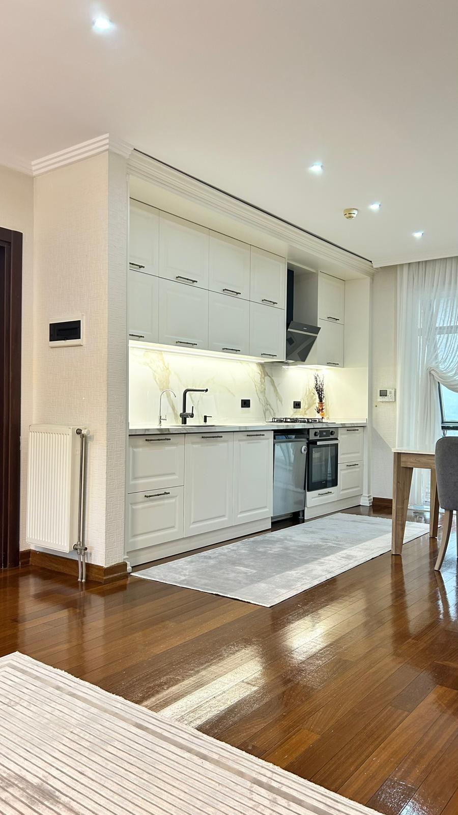 Bu projede 2 adet mutfak ve 1 adet TV ünitesi tasarım, üretim ve uygulaması tarafımızdan anahtar teslim olarak gerçekleştirilmiştir. Klasik ve modern çizgilerin harmanlandığı özel üretim mobilyalar, fonksiyonel çözümler ve dekoratif aydınlatma detaylarıyla mekâna estetik ve kullanışlı bir bütünlük kazandırılmıştır.